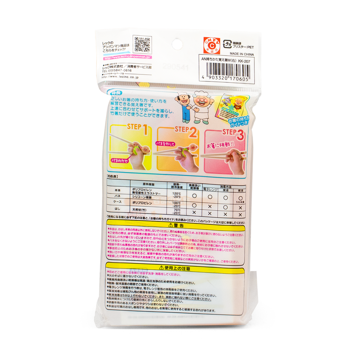 Die Training Chopsticks Anpanman für Rechtshänder sind speziell dafür entwickelt, Kindern spielerisch den Umgang mit Essstäbchen näherzubringen. Durch die feste Führung der Finger und den integrierten Federmechanismus unterstützen sie eine natürliche Handhaltung und erleichtern das kontrollierte Greifen von Speisen. Mit einer Länge von 16cm sind die Stäbchen ideal auf Kinderhände abgestimmt.