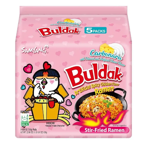 ab CHF 27.50Buldak Carbonara Ramen von Samyang sind scharfe Instantnudeln mit einer einzigartigen Mischung aus Carbonara-Sauce und würziger Buldak- Gewürzmischung. Jede Packung enthält 130g köstliche Ramen-Nudeln für ein intensives Geschmackserlebnis, das Liebhaber von scharfen und herzhaften Gerichten anspricht. Einfach zuzubereiten und perfekt für eine schnellen Genuss