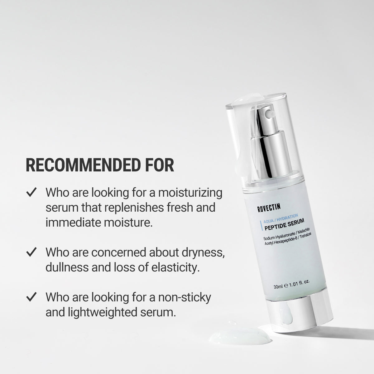Das hochkonzentrierte Aqua Peptide Serum von Rovectin durchfeuchtet müde und fahle Haut intensiv und belebt sie sichtbar. Mit Peptiden und Niacinamid und Hyaluron angereichert, stärkt es die Hautstruktur, fördert ein ebenmässiges Hautbild und schenkt neue Strahlkraft und glatte, pralle und revitalisierte Haut.