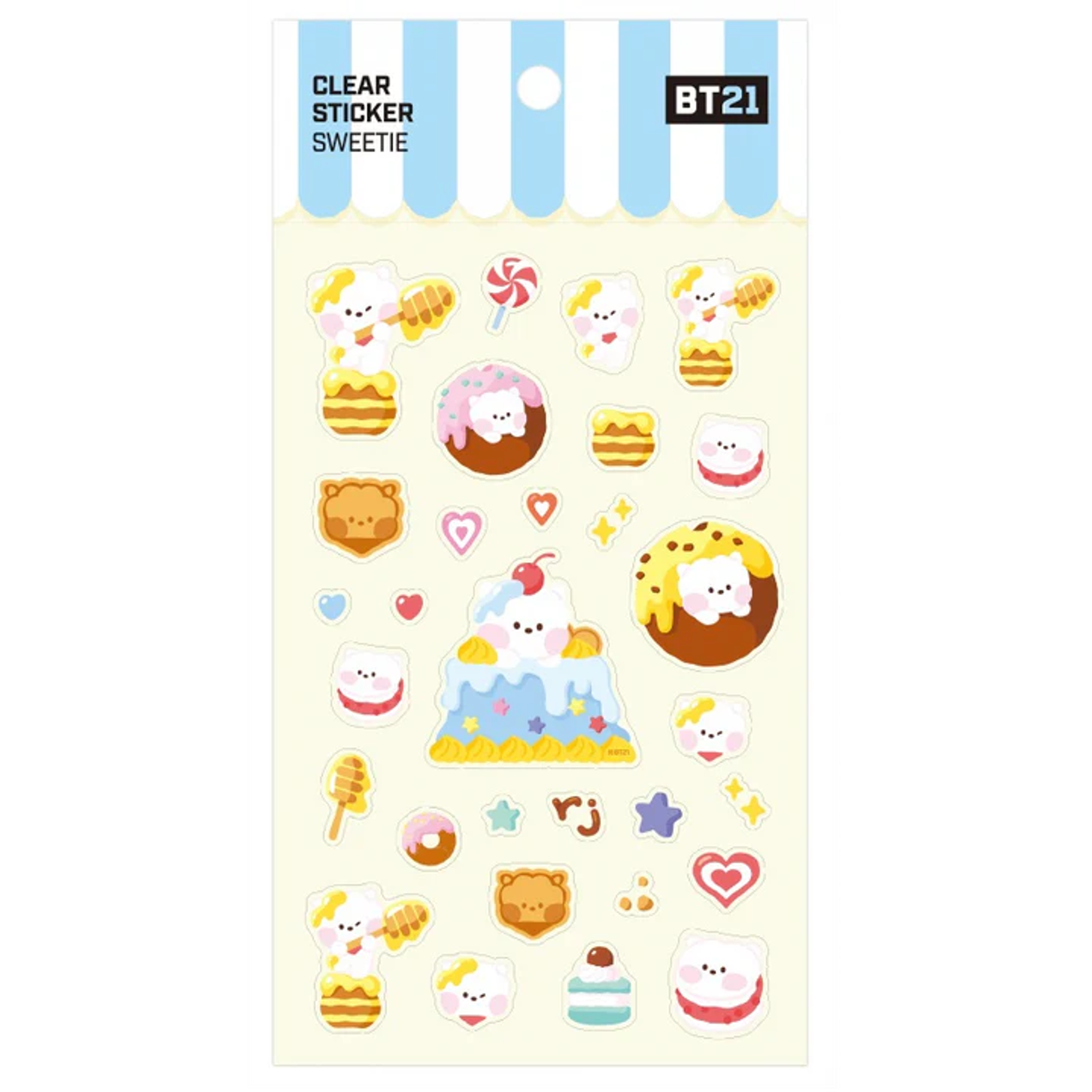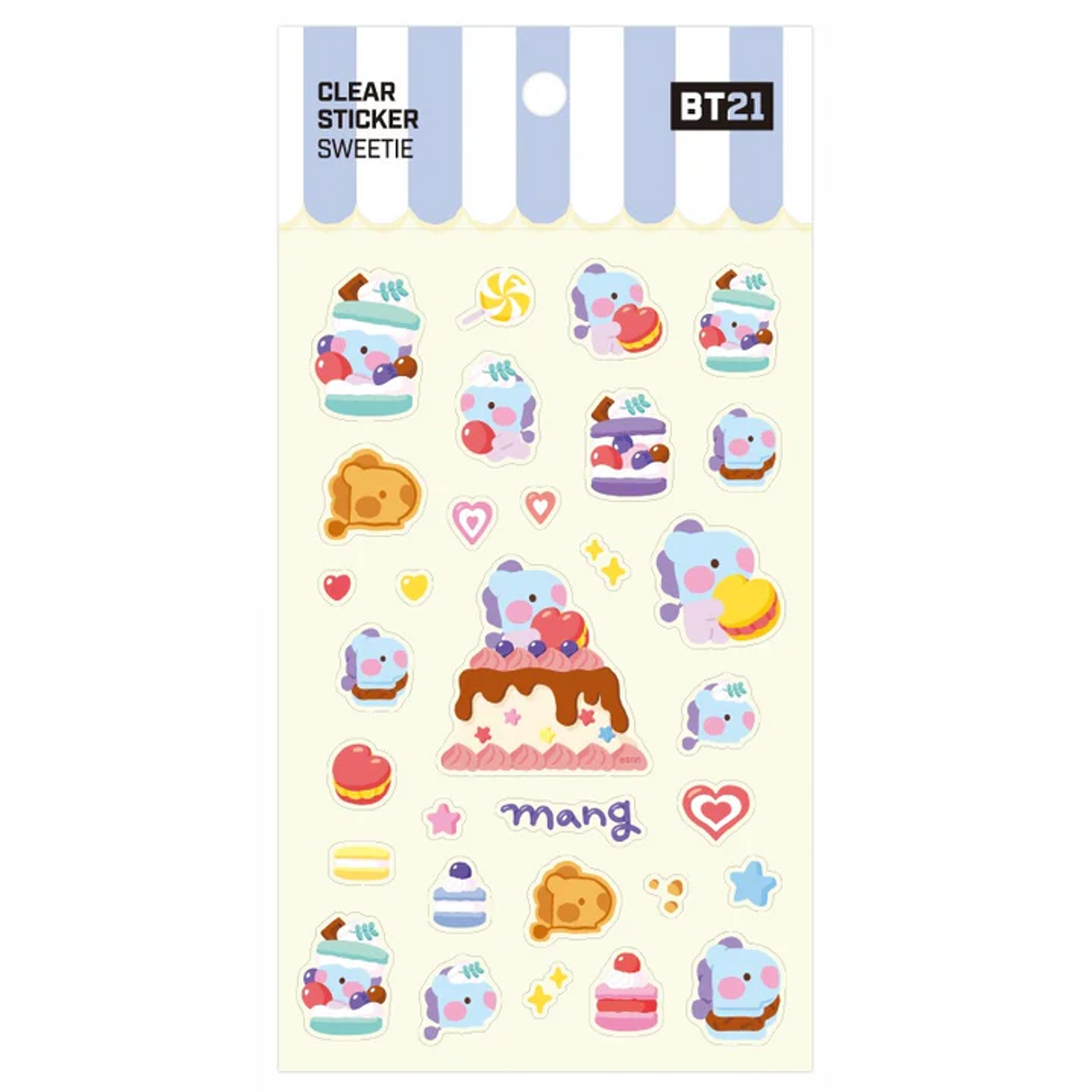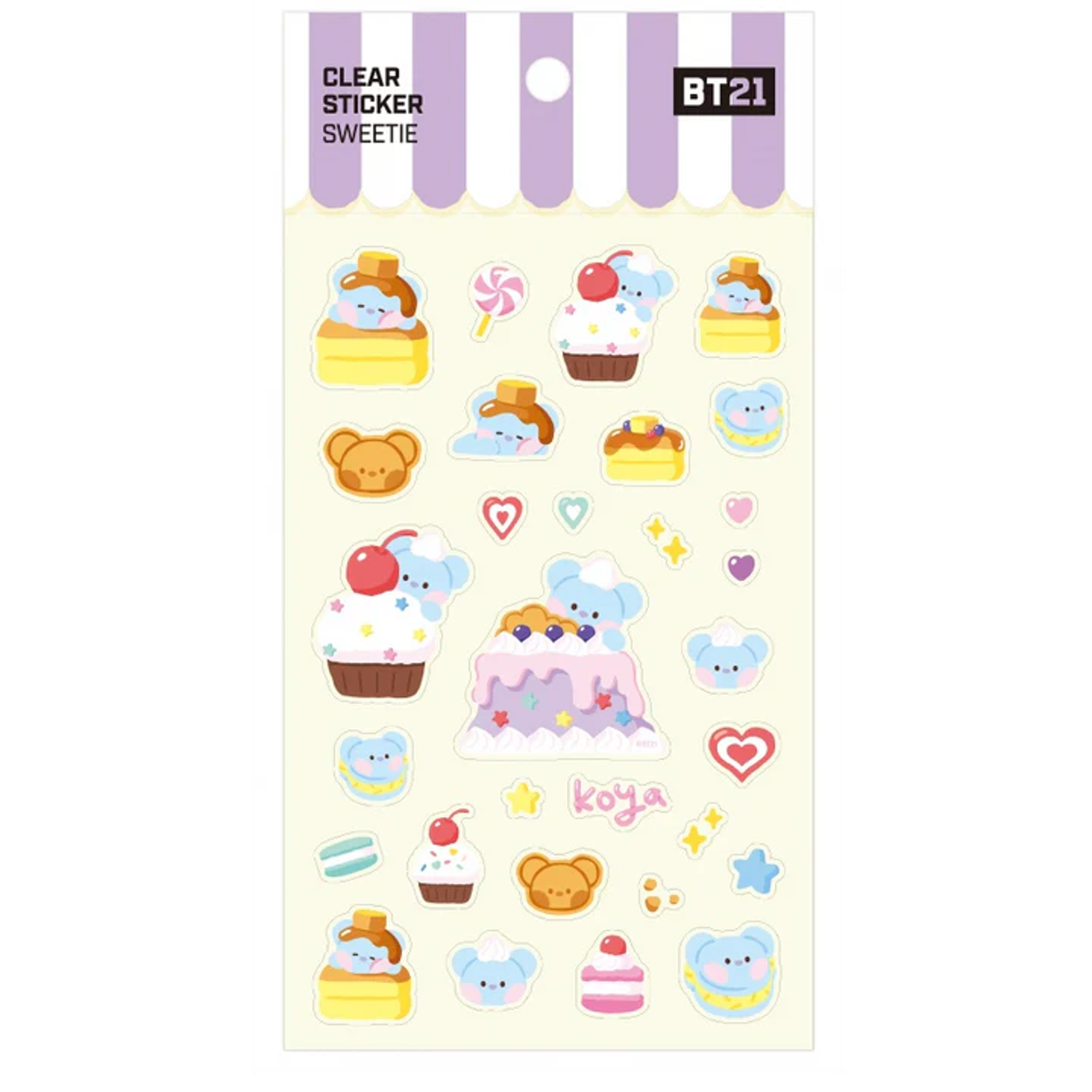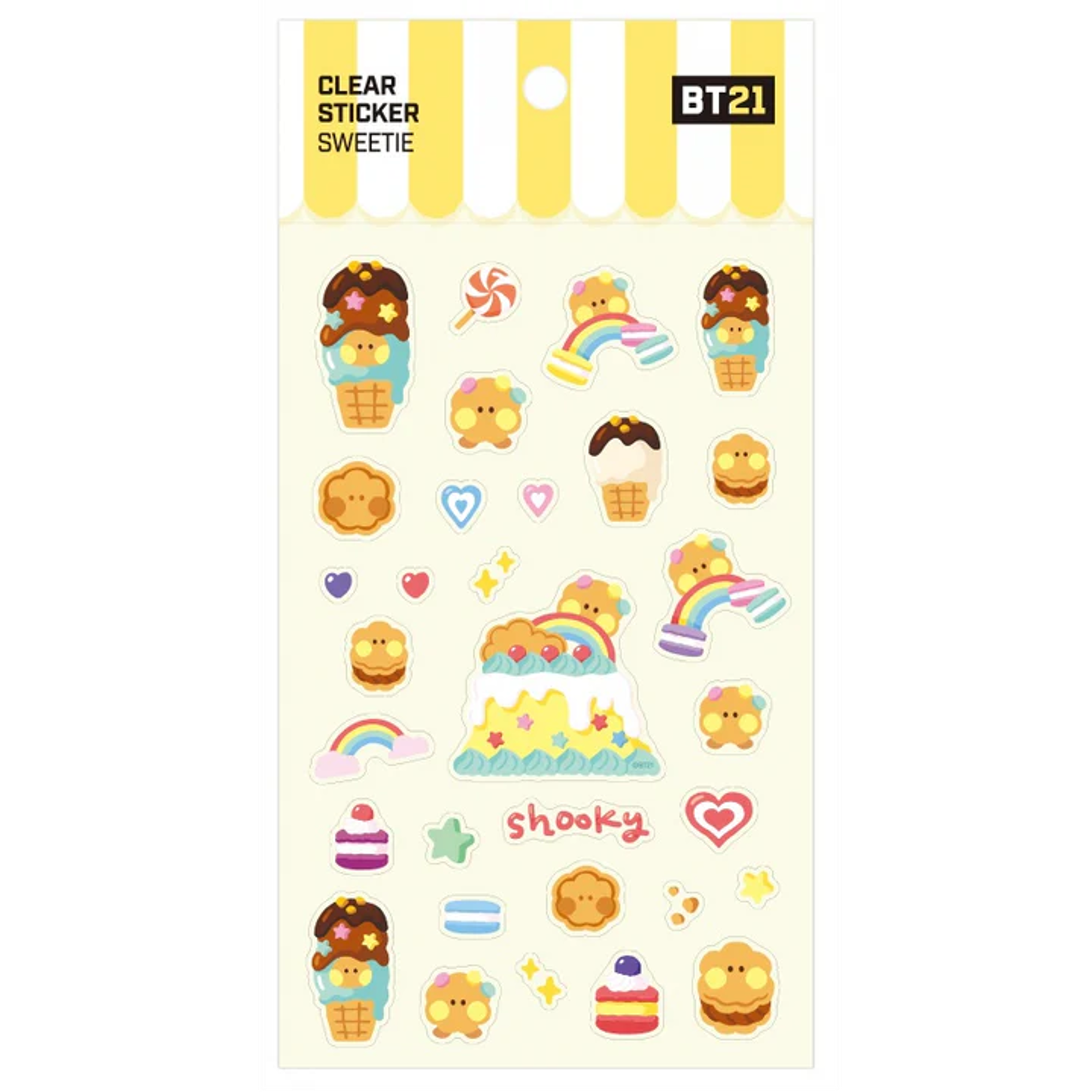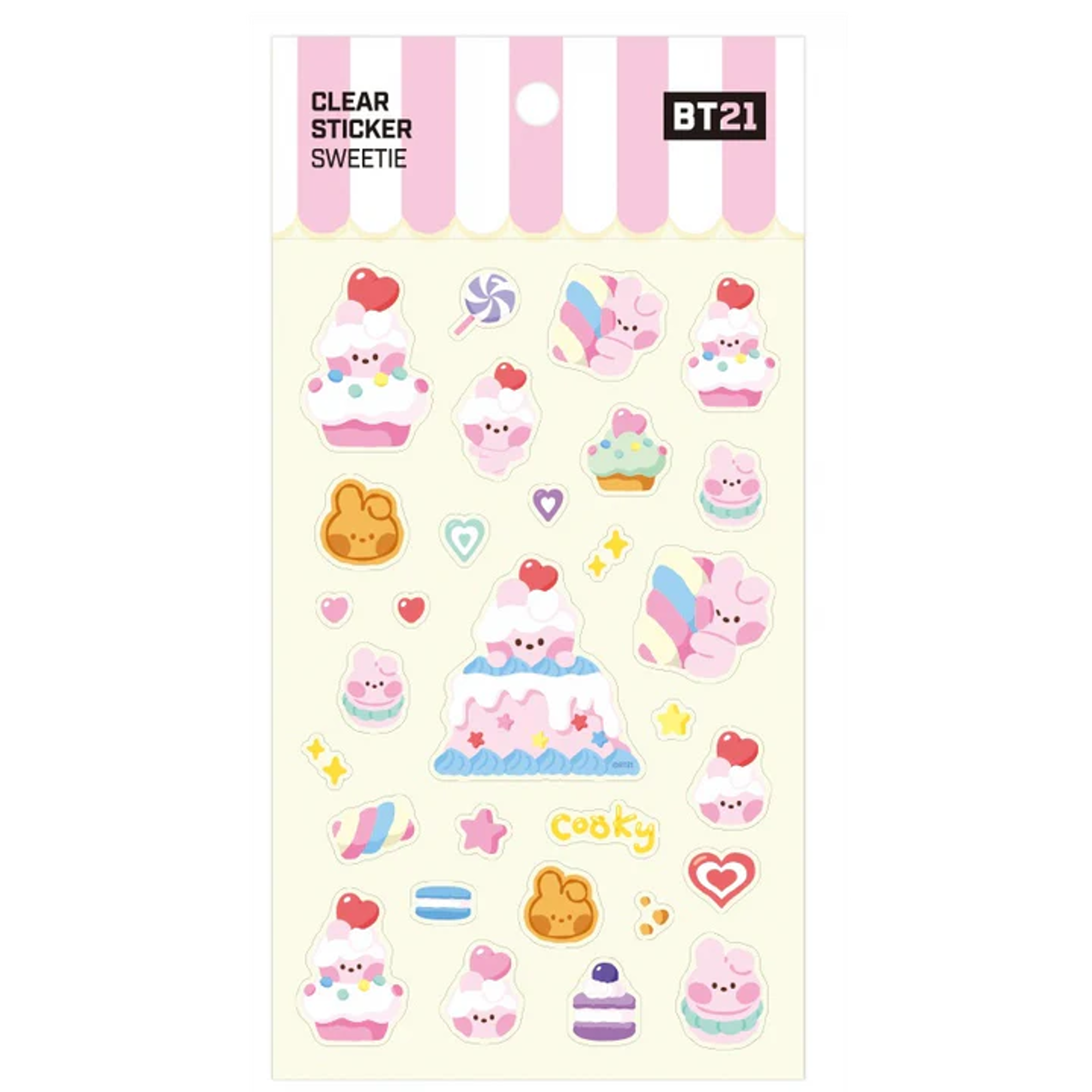 Die BT21 – Sweetie Clear Stickers sind eine süsse Ergänzung für jede Sammlung und perfekt zum Dekorieren von Notizbüchern, Handyhüllen, Laptops oder anderen Alltagsgegenständen. Die Sticker bestehen aus transparentem Material, wodurch sie sich harmonisch auf jede Oberfläche anpassen. Jedes Set zeigt die beliebten BT21-Charaktere in einem besonders niedlichen und verspielten Design, das Fans garantiert begeistert.