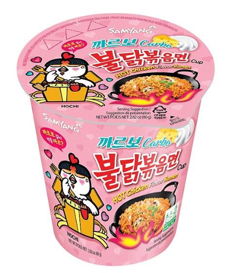 ab CHF 27.50Der Carbo Buldak Boggummyun Cup von Samyang kombiniert die intensive Schärfe der beliebten Buldak Ramen mit einer cremigen Carbonara-Note. Die bissfesten Weizennudeln werden mit einer sahnigen Sauce und einem pikanten Würzpulver verfeinert, das dem Gericht eine angenehme Milde und Tiefe verleiht. Der praktische 80g-Becher eignet sich perfekt für eine schnelle, würzige Mahlzeit zwischendurch.