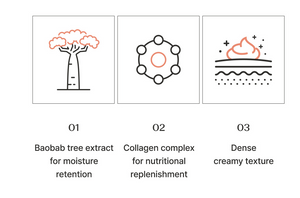 The Saem Care Plus Baobab Collagen Cream verbindet die feuchtigkeitsspeichernden Eigenschaften des Baobab-Extrakts mit einem hochwirksamen Collagen-Komplex aus sieben Collagen-Arten. Die reichhaltige Creme schützt die Haut vor Feuchtigkeitsverlust, stärkt ihre Struktur und schenkt ein glattes, gefestigtes Hautbild.