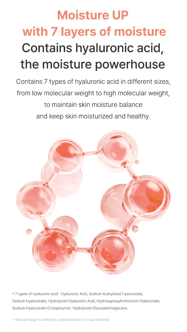 Ergänzt durch sieben Arten von Hyaluronsäure wird die Haut intensiv durchfeuchtet und bleibt langanhaltend geschmeidig.