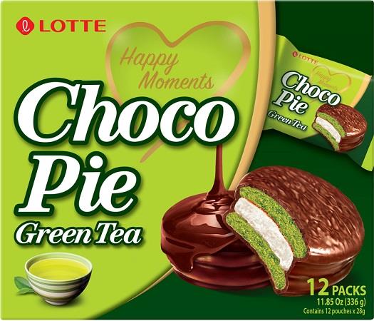 Der Choco Pie Green Tea von Lotte verbindet eine fluffige Marshmallow-Füllung mit dem aromatischen Geschmack von grünem Tee. Zwei weiche Kakaokekse umhüllt von einer Schokoladenglasur sorgen für die harmonische Kombination aus Süsse und der leicht herben Note von Matcha. Die Packung enthält 12 einzeln verpackte Choco Pies und eignet sich ideal für den Genuss unterwegs oder zu einer Tasse Tee oder Kaffee.