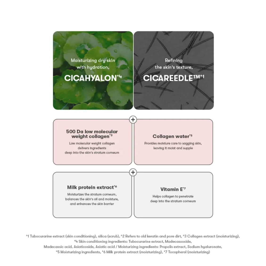 CICAHYALON™:Centella Asiatica-Extrakt, 3 Arten von Hyaluronsäure, Centella 4X-Komplex und Propolis-Extrakt. Bieten Feuchtigkeitspflege, Hautberuhigung und Schutz in Einem.