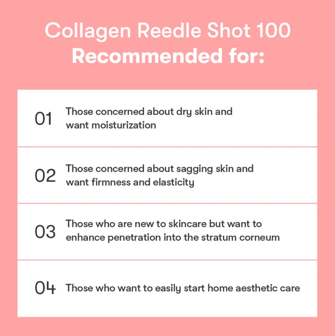 - Tragen Sie eine angemessene Menge des VT Collagen Reedle Shot 100 gleichmässig auf die Haut auf.