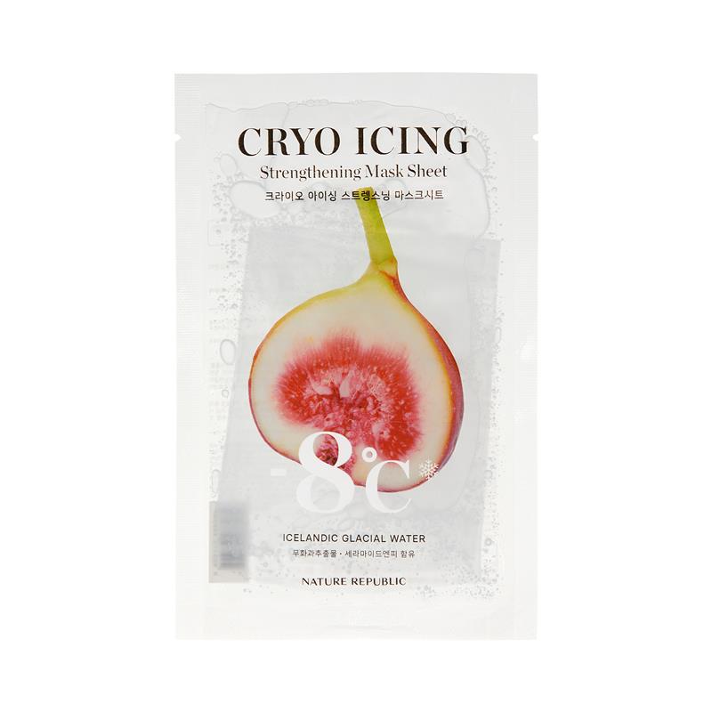 ab CHF 27.50Die Nature Republic Cryo Icing Strengthening Tuchmaske kühlt angenehm und nährt die Haut mit isländischem Gletscherwasser, Feigenextrakt und Ceramiden. Sie spendet intensive Feuchtigkeit und verbessert das Erscheinungsbild der Hautstruktur, während Mineralien aus dem natürlichen Gletscherwasser die Hautbarriere stärken.