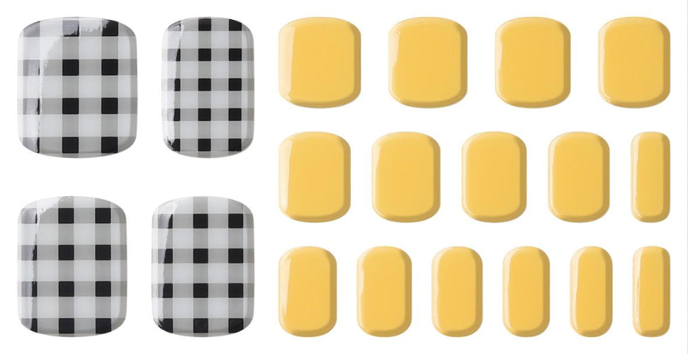 ab CHF 27.50Die Gelfit Nail Strips Pedi - Glossyblossom Pro: Happy Smile von Shine B mit einem Mix aus frischem Gelb und modernem Karo-Look sind perfekt für einen fröhlichen Auftritt! Die selbstklebenden UV-Gel-Nagelstreifen für Ihre Füsse sind halbgehärtet für einfache Anwendung – einfach aufkleben, unter der UV-/LED-Lampe aushärten und fertig! Brillanter Glanz und salonreifes Finish in Minuten.