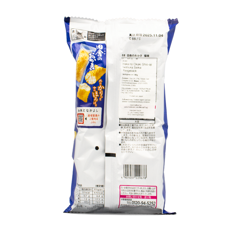 ab CHF 27.50Inaka Okaki Shio von Iwatsuka sind traditionelle japanische Reiscracker. Hergestellt aus Reis und mild gewürzt, bieten diese Cracker eine ausgewogene, fein salzige Note. Ideal als knackiger Snack zum grünen Tee oder als herzhafte Ergänzung zu verschiedenen Gerichten. Die 86g-Packung enthält acht einzeln verpackte Stücke und ist perfekt für unterwegs oder zum Teilen.