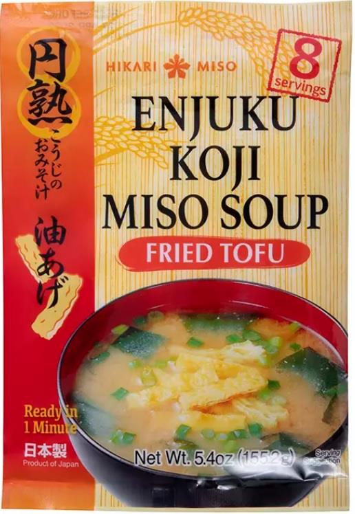 ab CHF 27.50Die Instant Miso Soup Aburaage von Hikarimiso ist eine Packung mit 8 einzelnen Portionen instant Misosuppe, die Aburaage (frittierter Tofu) enthält. Kombiniert den reichen Umami-Geschmack von Miso mit der texturierten und würzigen Note von Aburaage. Schnelle und einfache Zubereitung durch Zugabe von heissem Wasser, ideal für eine schnelle und dennoch traditionelle Misosuppe.
