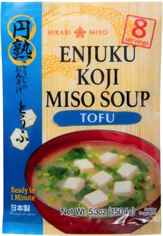 Misopaste (Sojabohnen , Reis, Salz, Ethanol), Zucker, Kelpextrakt, Salz, Tofu (Sojabohnen , Festigungsmittel (E509, E575)), Alge, Frühlingszwiebel, Hefeextrakt,Bonitopulver .