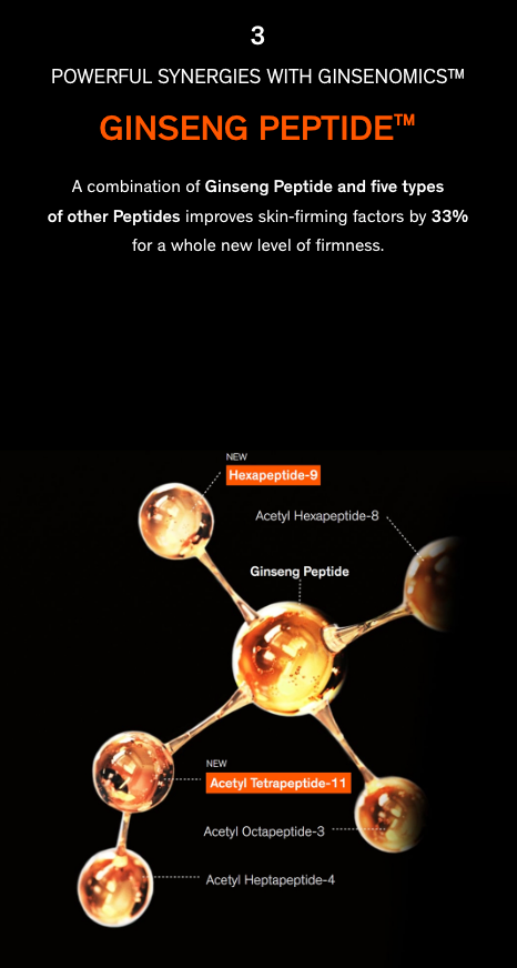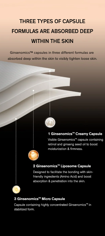 Water / Aqua / Eau, Butylene Glycol, Glycerin, Methyl Gluceth-20, Cetyl Ethylhexanoate, Behenyl Alcohol, Betaine, 1,2-Hexanediol, Methoxy Peg-114/Polyepsilon Caprolactone, Niacinamide, Carbomer, Tromethamine, Phenyl Trimethicone, Caprylyl Methicone, Jojoba Esters, Fragrance / Parfum, Hydrolyzed Ginseng Saponins, Glyceryl Caprylate, Phenoxyethanol, Arachidyl Alcohol, Ethylhexylglycerin, Dextrin, Theobroma Cacao (Cocoa) Extract, Sodium Metaphosphate, Linalool, Arachidyl Glucoside, Panthenol, Mannitol, Panax Ginseng Seed Oil, Glycine Soja (Soybean) Oil, Panax Ginseng Root Extract, Sodium Chloride, Panax Ginseng Leaf/Stem Extract, Limonene, Rehmannia Glutinosa Root Extract, Paeonia Lactiflora Root Extract, Panax Ginseng Flower Extract, Polygonatum Odoratum Rhizome Extract, Nelumbo Nucifera Flower Extract, Retinol, Propanediol, Lilium Tigrinum Bulb Extract, Hydrogenated Lecithin, Sodium Hyaluronate, Tocopherol, Caprylyl Glycol, Pentaerythrityl Tetra-Di-T-Butyl Hydroxyhydrocinnamate, Phytosphingosine, Sodium Polyaspartate, Hydrolyzed Hyaluronic Acid, Acetyl Heptapeptide-4, Sodium Hyaluronate Crosspolymer, Acetyl Tetrapeptide-11, Sodium Methyl Stearoyl Taurate, Hyaluronic Acid, Acetyl Hexapeptide-8, Sodium Hydroxide, Hexapeptide-9, Sodium Acetylated Hyaluronate, Acetyl Octapeptide-3
