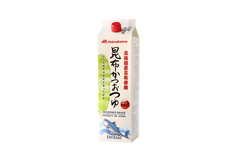 Wasser, Sojasauce ( entfettete Sojabohne, Weizen, Salz, Sojabohne, Ethanol), Zucker, Salz, Ethanol, Geschmacksverstärkder (E621, E631, E627), Kelpextrakt, Bonitopulver, Kelp, Mirin (Reis, Reiskoji, Verdickungsmittel (E407), Ethanol)
