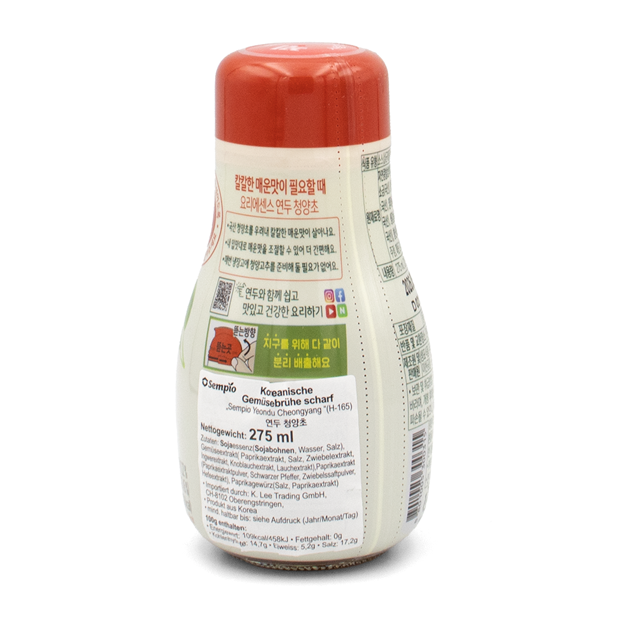 Die koreanische Gemüsebrühe scharf von Sempio ist eine pflanzliche Flüssigwürze mit pikantem Aroma. Sie enthält Zwiebeln, Knoblauch und Ingwer und wird mit einer ausgewogenen Schärfe verfeinert. Die Gemüsebrühe eignet sich ideal als Basis für Suppen, Eintöpfe oder würzige Pfannengerichte. Die 275ml-Flasche lässt sich leicht dosieren und ist perfekt für die schnelle Küche.