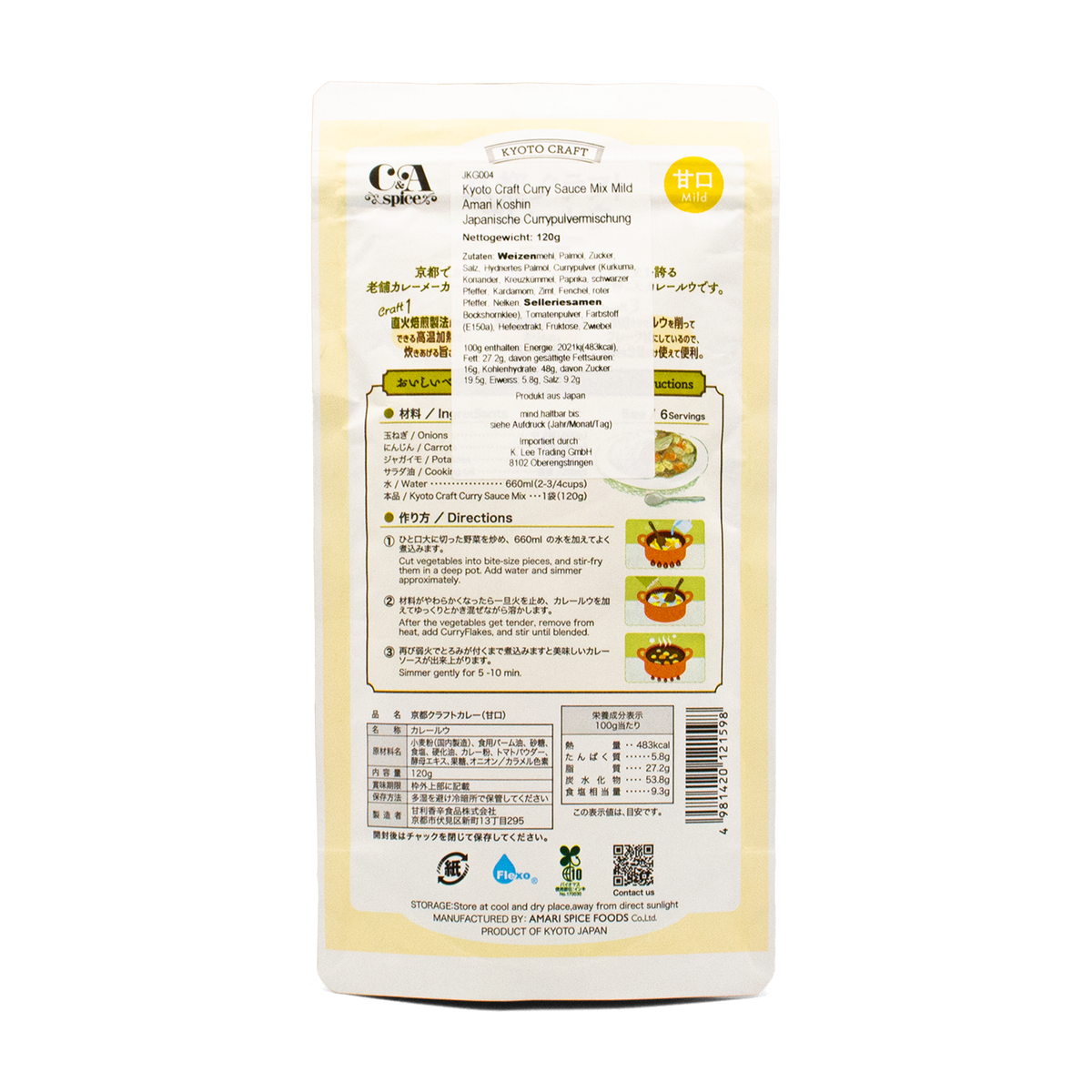 ab CHF 27.50Der Kyoto Craft Curry Sauce Mix Mild von Amari Koshin ist eine pflanzenbasierte Currymischung, die mild gewürzten Geschmack mit tiefem Aroma vereint. Die geröstete Gewürzmischung reicht für sechs Portionen und ist ideal für Curry-Reis, Curry-Udon oder als würzige Sauce zum Dippen. Sie lässt sich schnell und unkompliziert zubereiten und eignet sich dank ihrer ausgewogenen Milde für alle, die sanftes, dennoch authentisches japanisches Curry geniessen möchten.