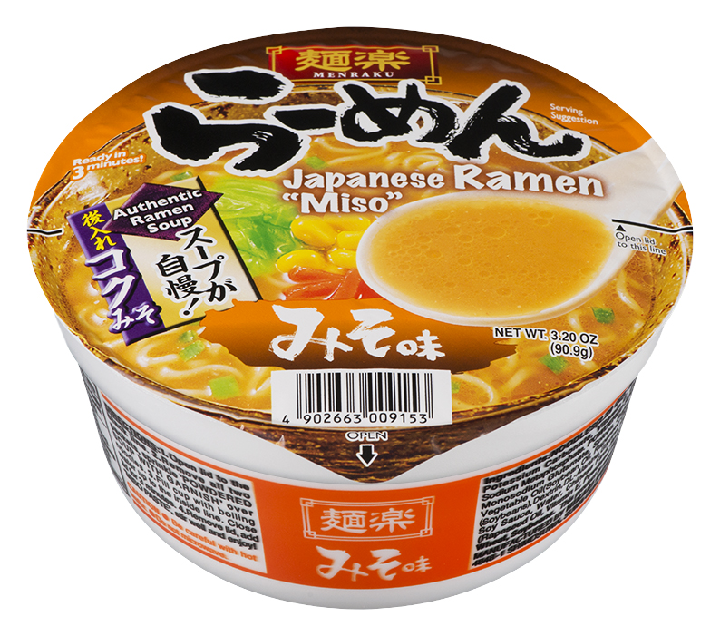 -Die Menraku Cup Miso Ramen sind nun fertig zum Verzehr. Geniessen Sie die aromatischen und herzhaften Ramen direkt aus dem Cup.