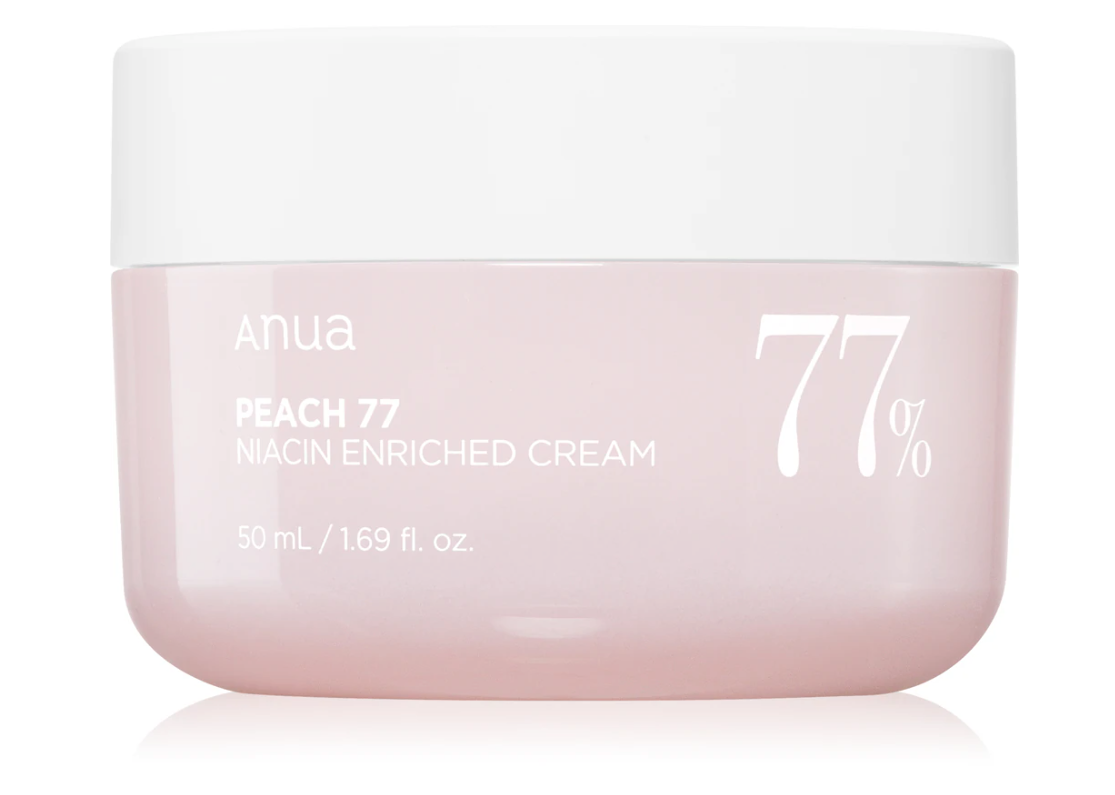 Die Anua Peach 77 Niacin Enriched Cream vereint 77 % Pfirsichextrakt mit Ceramiden, Kollagen und Panthenol, die Ihre Haut intensiv hydratisiert, ihre Elastizität fördert und ein pralles, strahlendes Hautbild verleiht. Die federnde, puddingartige Gel-Textur zieht schnell ein, ohne zu kleben, und hinterlässt ein geschmeidiges Finish. Dank ihrer sanften Formulierung, dermatologisch getestet und für alle Hauttypen geeignet, eignet sich die Creme sowohl als tägliche Pflege als auch als nährende Overnight-Maske.